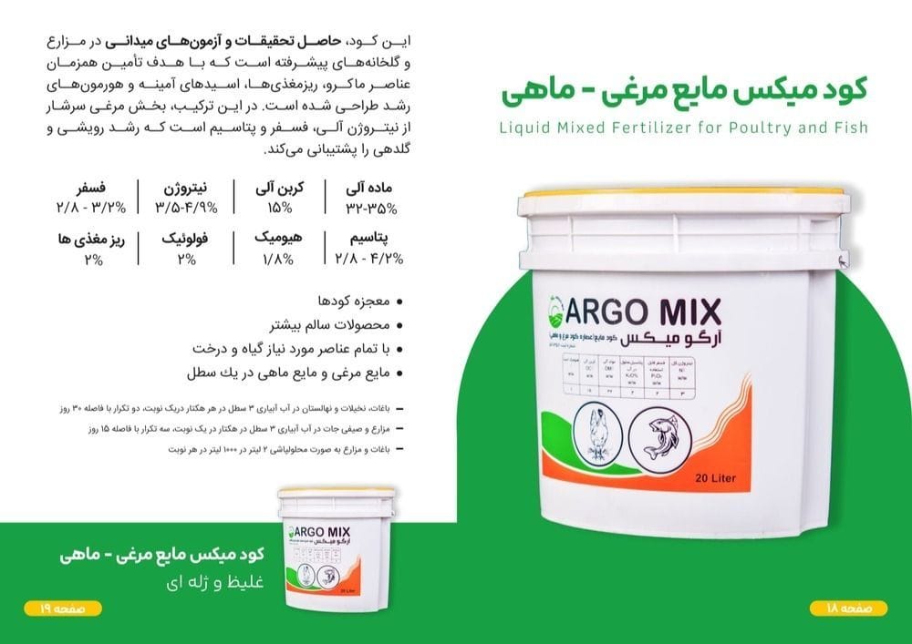 عصاره کود مرغ و ماهی غنی شده با هیومیک و فولوئیک غلیظ و ژله ای x5 آرگومیکس 20 لیتری