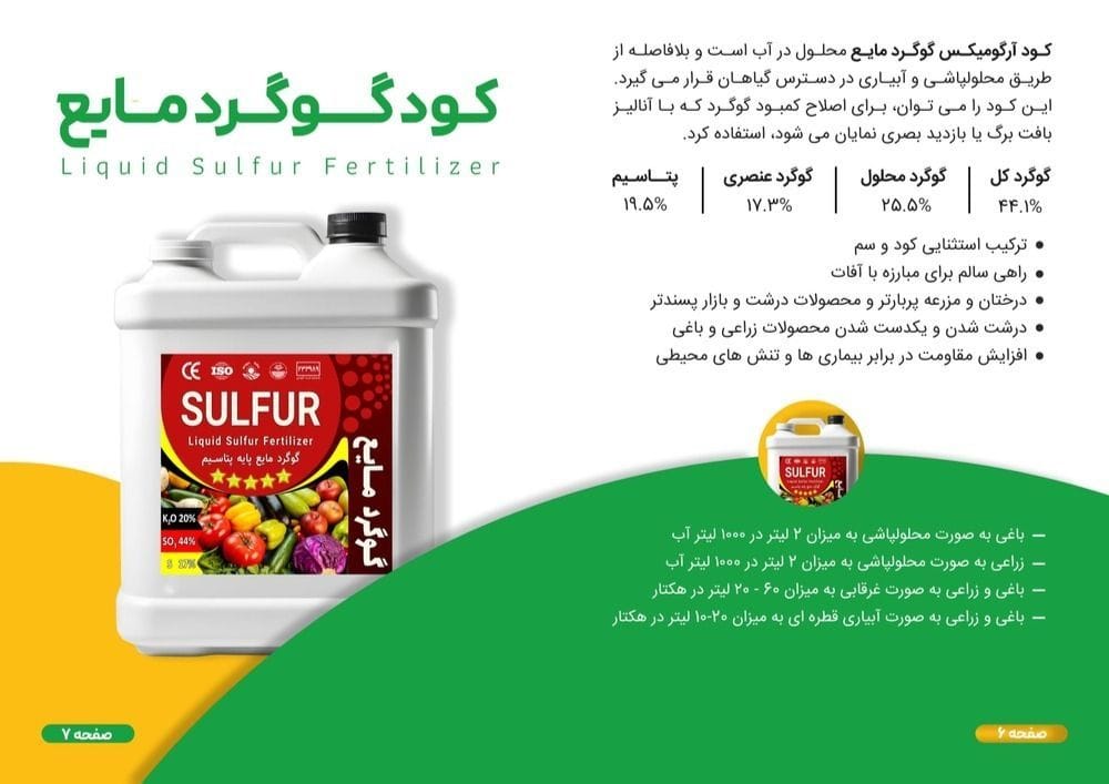 گوگرد مایع پتاسه 40% گوگر 20% پتاسیم ۵ ۱۰ ۲۰ لیتری